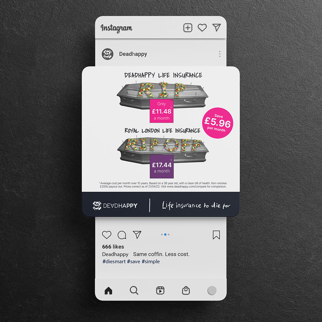 The below stand out as highly effective paid advertisements deployed on Instagram and Facebook. The creative leans into dark humour, irreverence, and bold visuals to break the mould of traditional insurance advertising. The tone is cheeky, informal, and provocative, it’s designed to catch you off guard. In short, the ads are designed to be as un-life-insurancey as possible, to cut through the noise and make people pay attention to something they usually avoid.