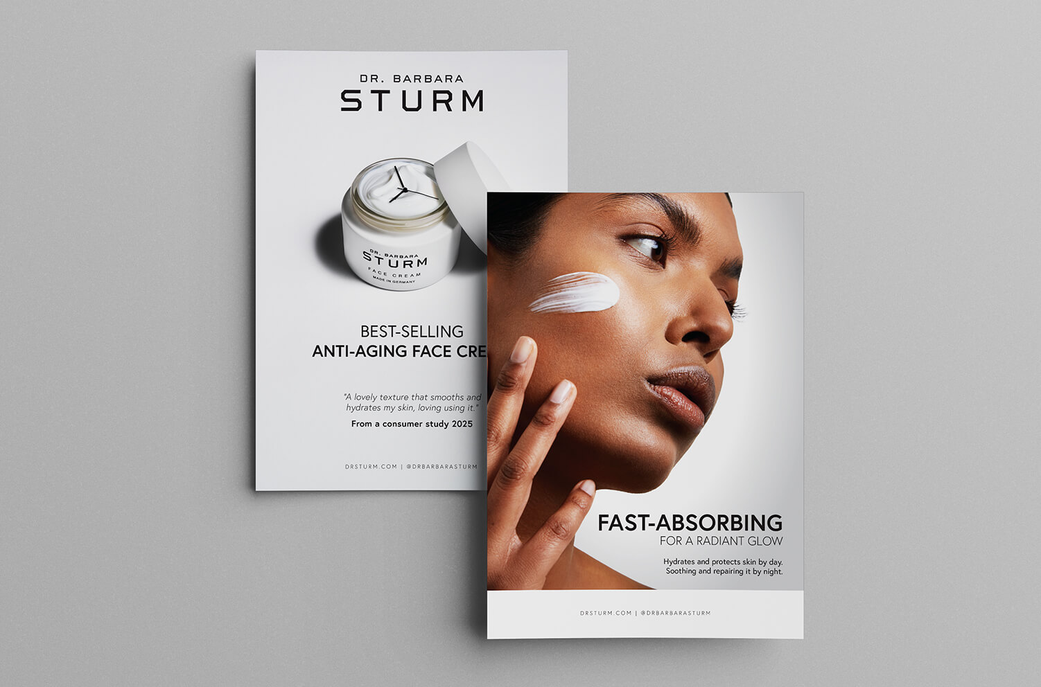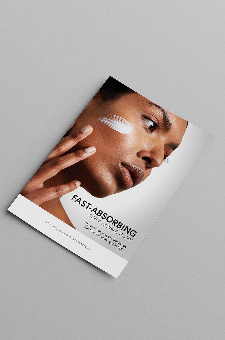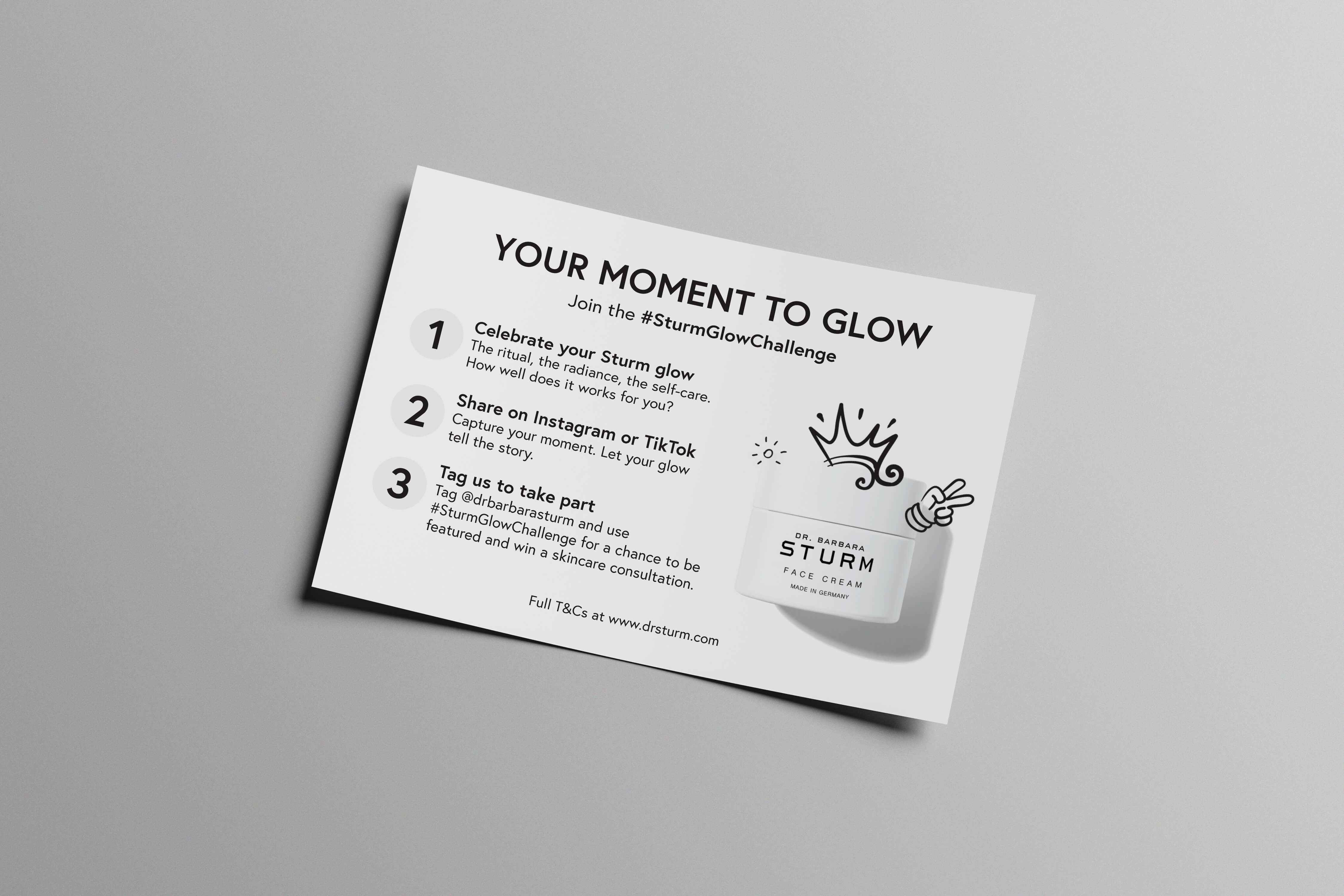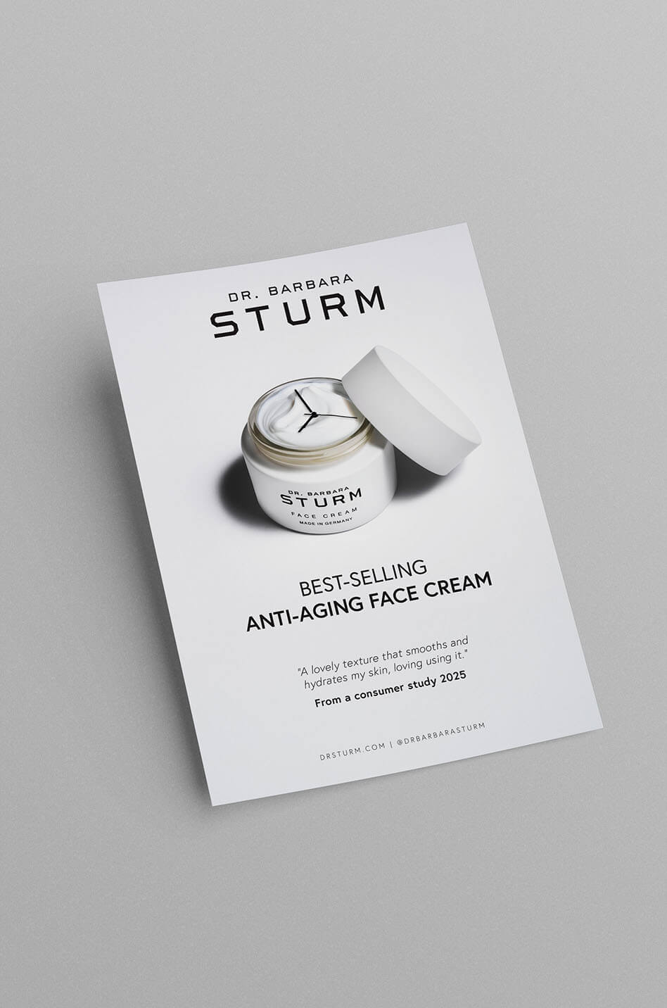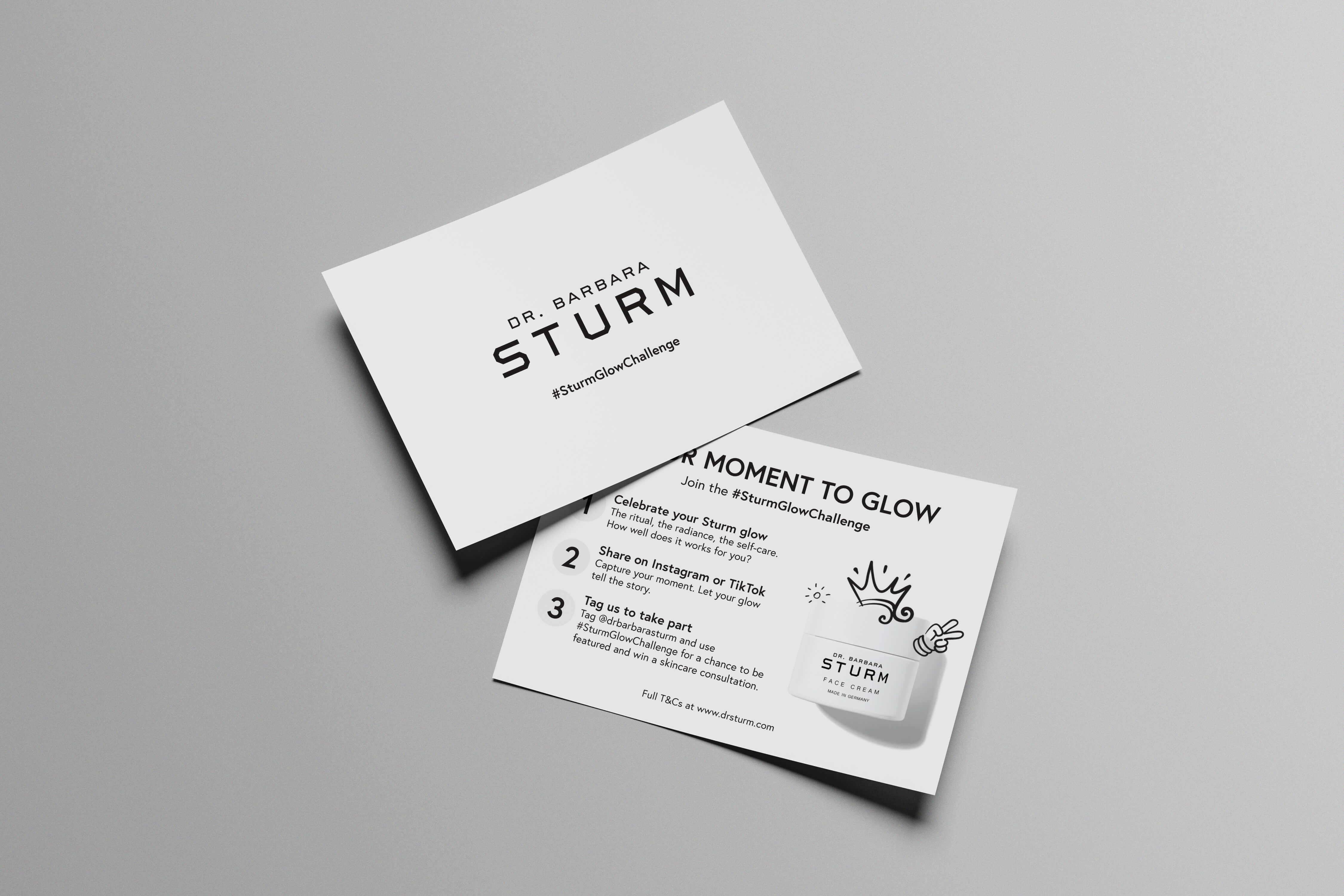 Create a seeding card that is sent from Dr. Sturm to celebrities, influencers and press offices accompanying the product (Dr. Barbara Sturms best selling anti-aging face cream). The aim is to generate buzz, excitement and interest in the product.