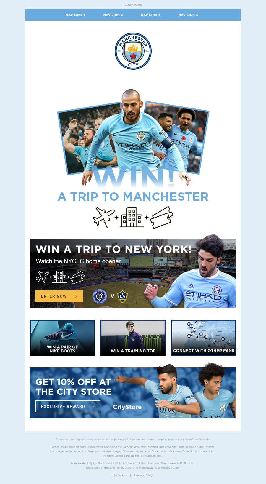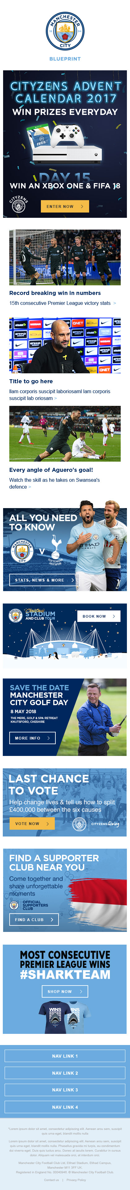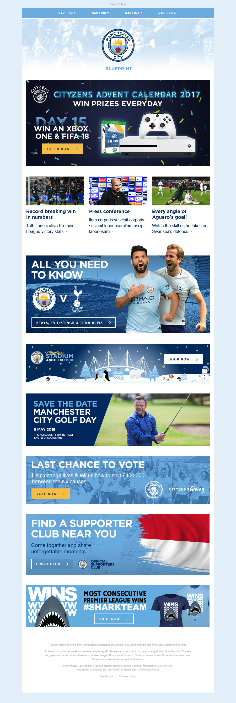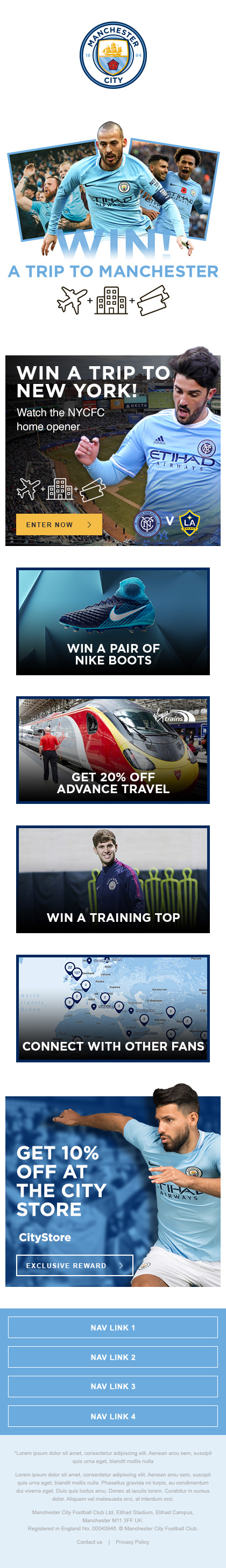 These emails would go out as a general newsletter to anyone signed up on the MCFC database. Running competitions, quizzes and behind the scenes content exclusively to it Cityzens.